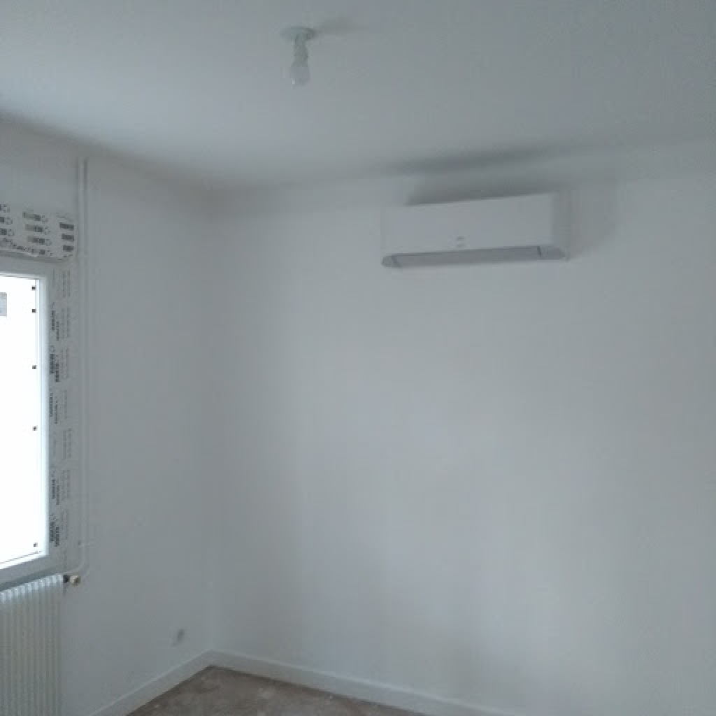 Installation d'une climatisation réversible de marque ATLANTIC sous forme de bi-split (2 unités murales intérieures et 1 unité extérieure) dans une maison afin d'assurer le chauffage en mi-saison et de climatiser en été.
